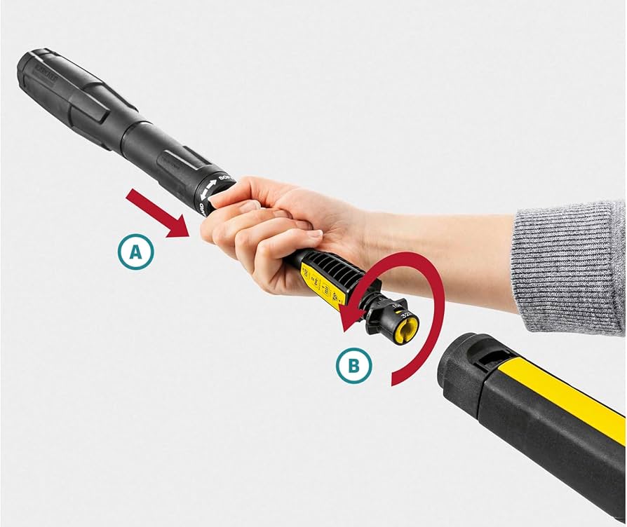 La lanza Kärcher VP 145 Vario Power Jet Full Control es un accesorio versátil para limpiadoras de alta presión de la serie K4 y K5 de Kärcher, diseñado para adaptar la potencia de limpieza de forma continua sin necesidad de cambiar boquillas manualmente.