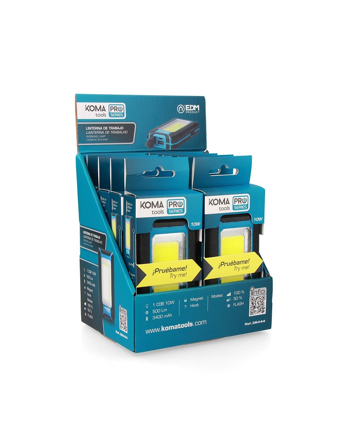 La linterna LED profesional COB KOMA de 8 W y 500 lúmenes está diseñada para ofrecer una iluminación potente, uniforme y fiable en entornos de trabajo exigentes. Gracias a la tecnología COB LED, proporciona una luz amplia y homogénea, perfecta para iluminar zonas de trabajo sin sombras molestas.