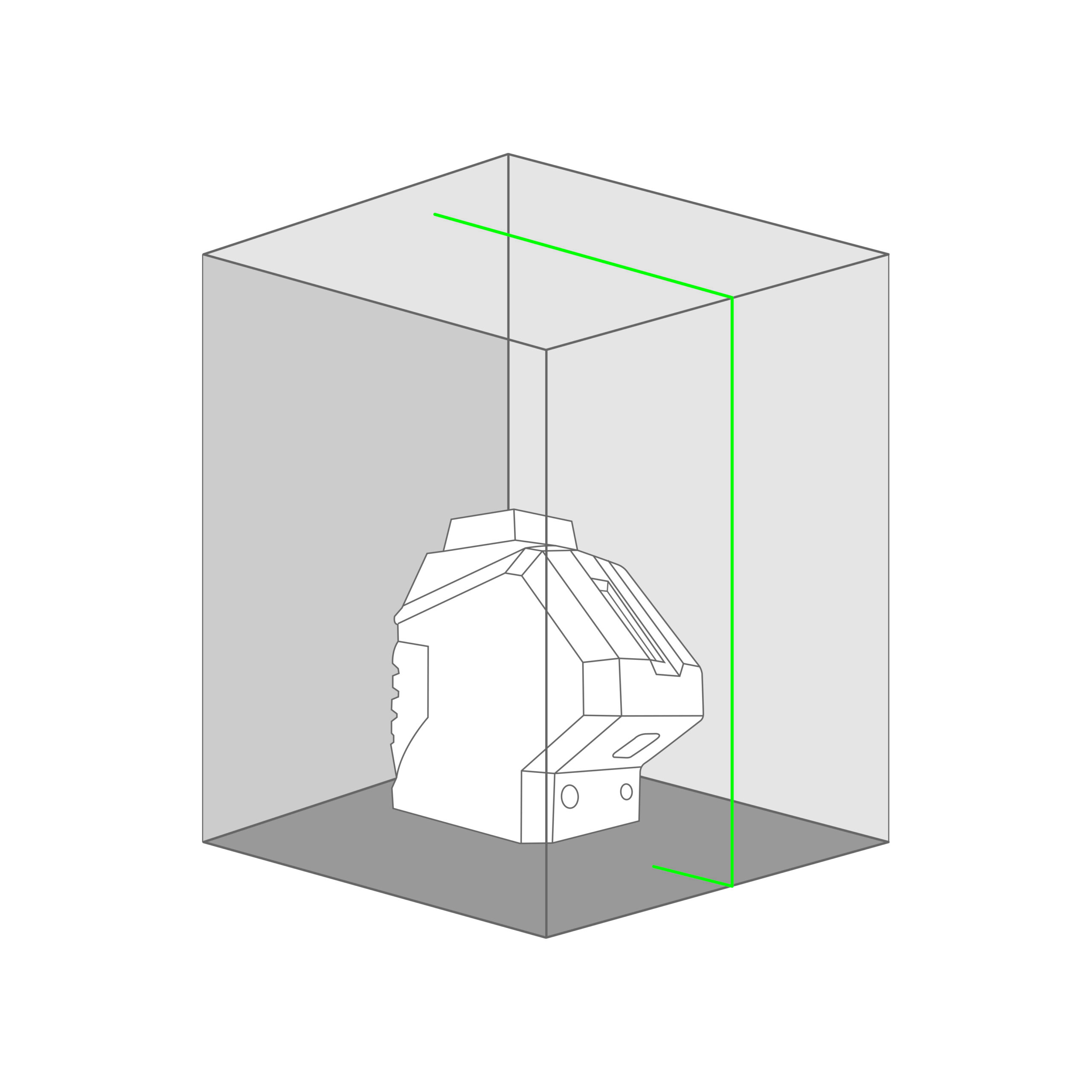 Este equipo proyecta un haz láser verde, más visible incluso en ambientes luminosos, formando un plano completo de 360° alrededor de la estancia, una línea vertical (1V) y dos líneas adicionales (2D) que permiten trabajar con referencias laterales de nivel y plomo simultáneamente. Esta combinación facilita: