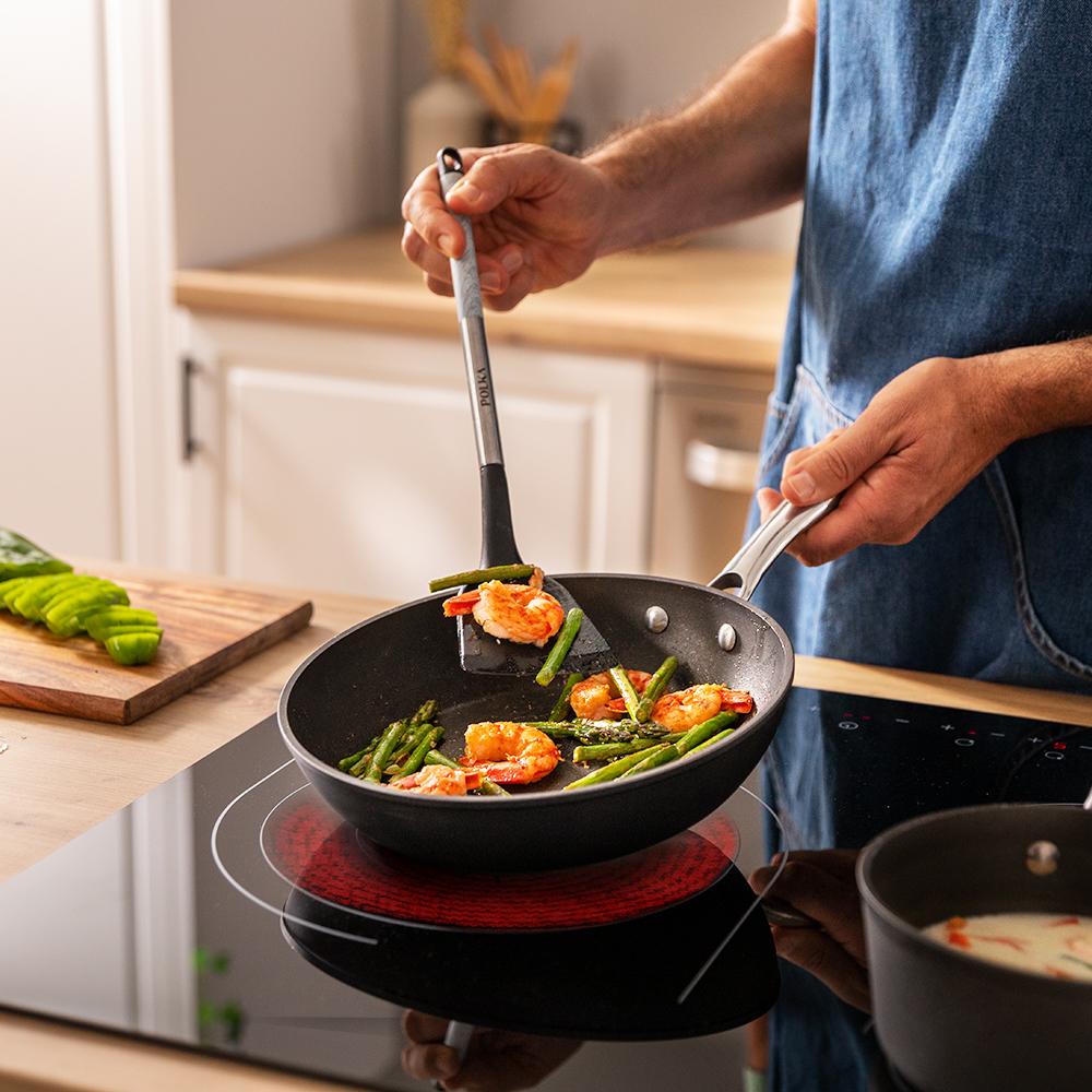 Incluye sartenes de los tres tamaños más usados en cocina diaria, lo que lo convierte en un set versátil y práctico para freír, saltear y dorar ingredientes con resultados profesionales.